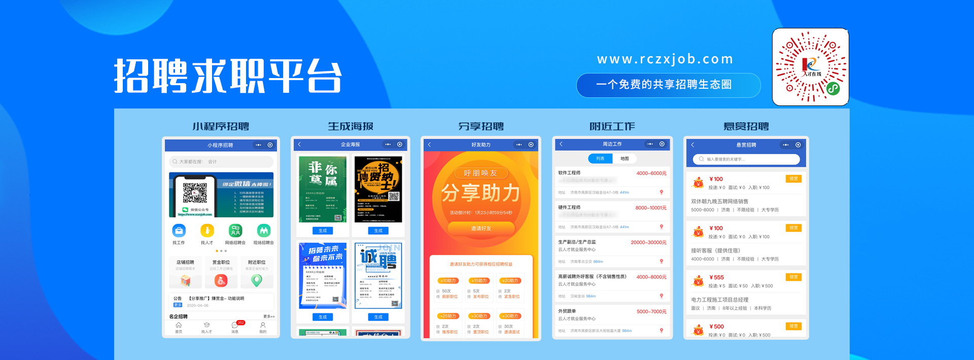 人才在線招聘網(www.rczxjob.com)是面向用人單位及求職群體的一站式專業公益性人才招聘網站,包含線上招聘推廣、在線求職、地圖求職、在線招聘會等功能,為企業客戶提供以網絡招聘為核心的人才解決方案。無論是求職者還是企業HR都可以獲得人才在線招聘網提供的專業人才招聘服務。